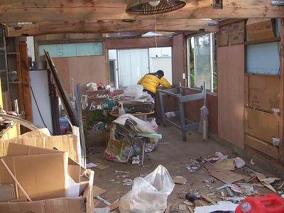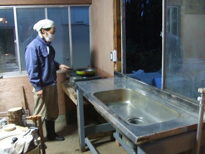 朝6時からの朝仕事は、事務局長は土間の掃除。