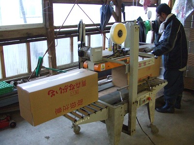 それを受け取った詰め込み担当者は、ダンボールに丁寧に並べ、