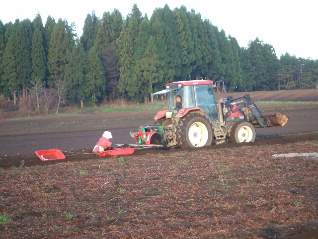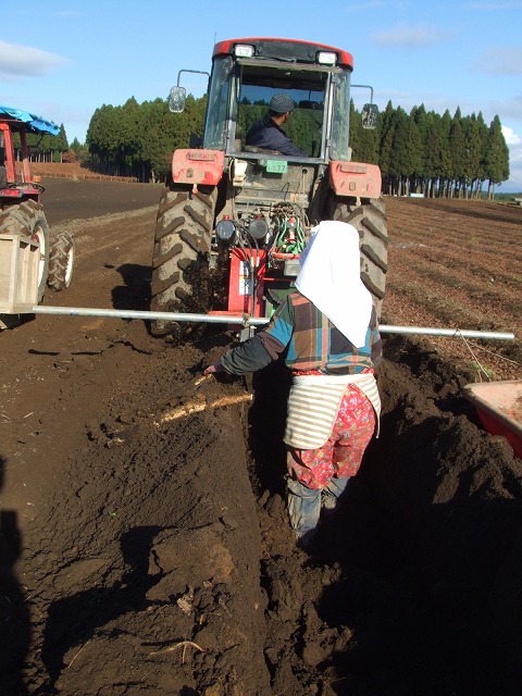 パワーショベルのすぐ横で長いもを引き上げる人が作業をしてるのですが、