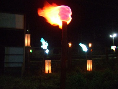 灯篭を置いて回ったり、松明(たいまつ)づくりをしたりでした。