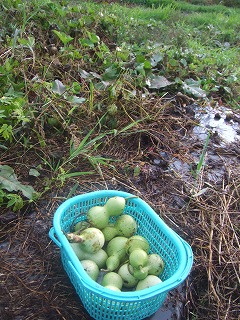 その後、昨日の残り物の朝食を食べてからごぼう畑へ。